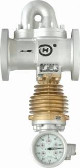 被測(cè)蒸汽流經(jīng)流量計(jì)本體:是由孔板節(jié)流,在前后壓差的作用下,一部分蒸汽通過(guò)噴嘴進(jìn)入分流管噴嘴形成的射流推動(dòng)轉(zhuǎn)子軸以上端的翼輪旋轉(zhuǎn),轉(zhuǎn)子軸下端有兩阻尼葉片在注滿阻尼液的阻尼室中作阻尼轉(zhuǎn)動(dòng),使翼輪能充分吸收射流的動(dòng)能。翼輪的旋轉(zhuǎn)力矩與阻尼力矩相平衡時(shí),翼輪的轉(zhuǎn)速與流經(jīng)流量計(jì)被測(cè)蒸汽的質(zhì)量流量成正比,通過(guò)修正,分度,由指示器表盤反映出累積蒸汽的實(shí)際流量.