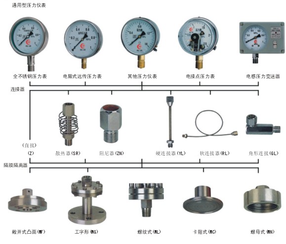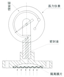 為了擴大各種通用型壓力儀表的使用范圍,能適用于測量強腐蝕、高溫、高粘度、易結晶、易凝固和有固體浮游物介質的壓力,以及對某些測量介質不能直接進入通用型儀表內和便于清洗防止沉淀物持積聚的場合的壓力檢測時,須采用由隔膜隔離器與通用型壓力儀表組成一個系統的隔膜表。 |