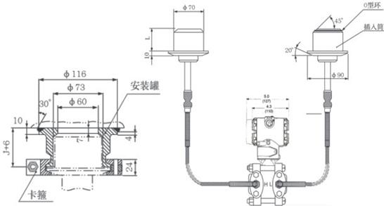 AK-3051DP雙法蘭液位變送器是一種通過安裝在管道或容器上的遠(yuǎn)傳裝置來感受被測壓力,該壓力經(jīng)毛細(xì)管內(nèi)的灌充硅油(或其它的液體)傳遞至變送器的主體,然后由變送器主體內(nèi)的δ室和放大線路板,將壓力或差壓轉(zhuǎn)換4~20mA.DC信號輸出(參見結(jié)構(gòu)原理圖)。 |