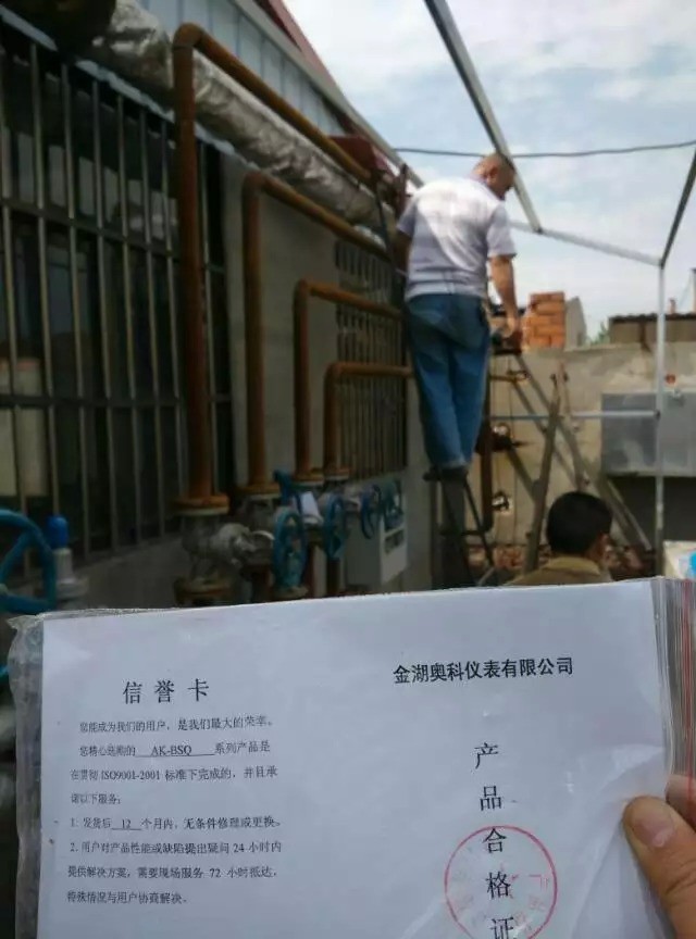 5月份初,金湖奧科儀表有限公司安裝團(tuán)隊(duì)來(lái)到位于南京六合區(qū)的南京康明服飾有限責(zé)任公司水洗分公司(簡(jiǎn)稱:康明水洗廠)現(xiàn)場(chǎng)安裝蒸汽流量計(jì),該公司使用蒸汽對(duì)服裝經(jīng)行蒸洗上色,所以要求對(duì)流量計(jì)的精度非常高,在采購(gòu)蒸汽流量計(jì)的過(guò)程中,該公司反復(fù)比較,多方咨詢,zui終選擇我們奧科儀表的蒸汽流量計(jì),在一系列的安裝過(guò)程中,客戶單位對(duì)于我們的流量計(jì)給與高度贊譽(yù),對(duì)工人水準(zhǔn)給予贊揚(yáng)!
